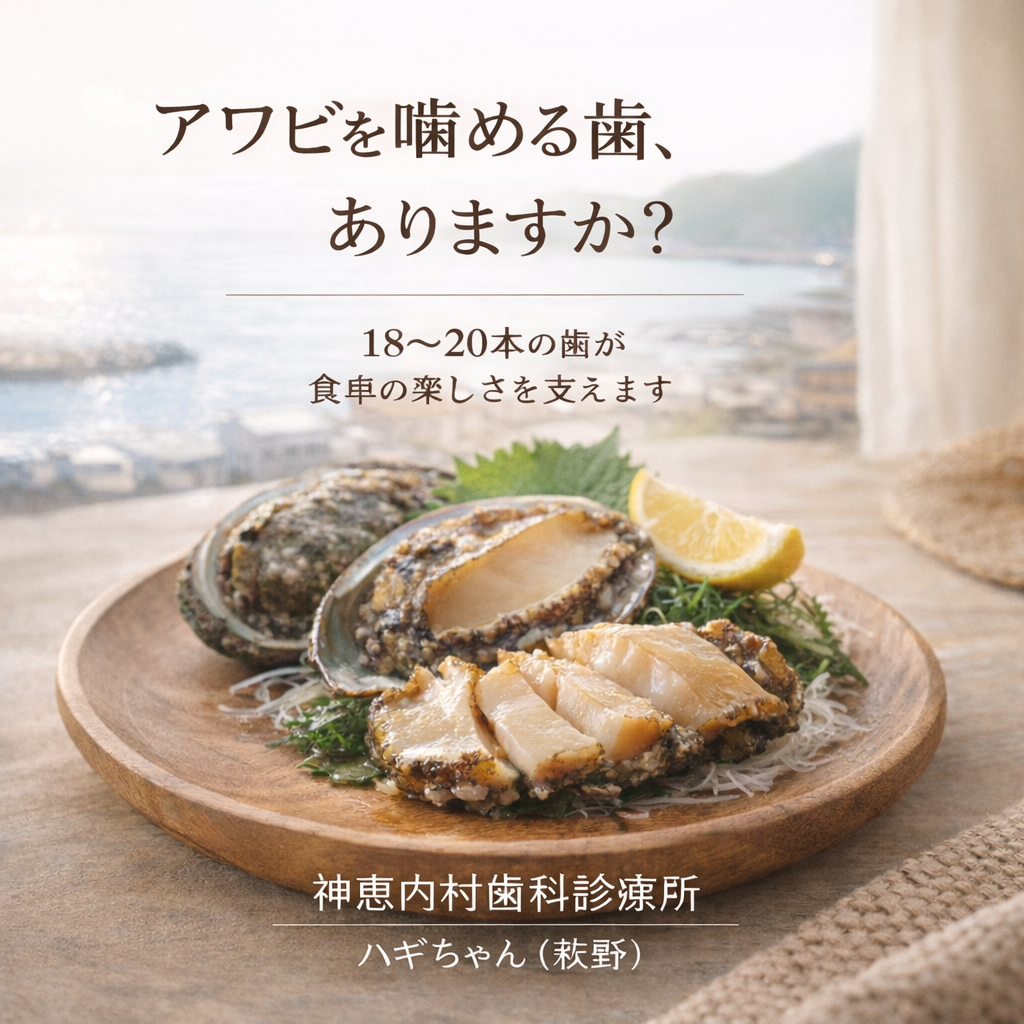 アワビを本当に楽しむには、20本前後の歯が望ましいのです。